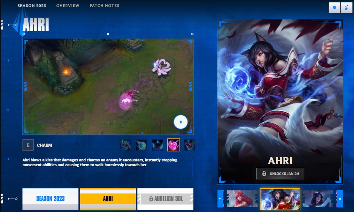 Ahri ASU preview is available in the client hub stating that the update will come to live servers on January 24th! (Patch 13.2)