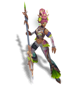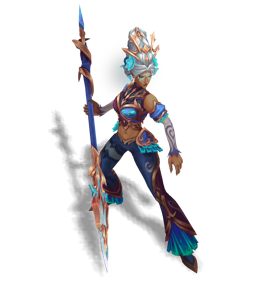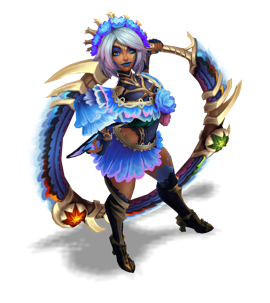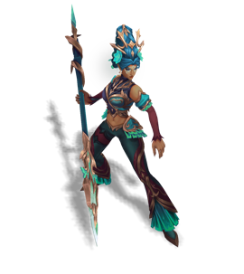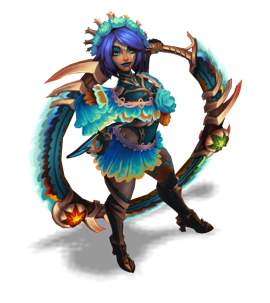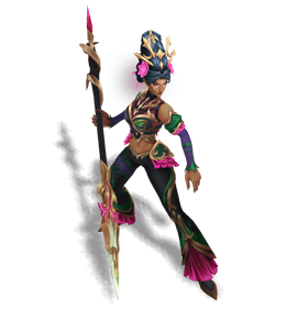 A jaguar leader of her own pack, Nidalee was both feared and respected by her neighboring humans. When she fell to a group of hunters for protecting her family, the shared love not just from her pack, but from her neighbors, reincarnated Nidalee as an Eidola Vida. With the power to assume both jaguar and human form now, she watches over her kin from afar.