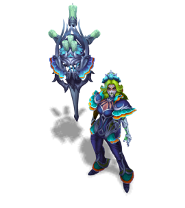 Qiyana was a prodigiously self-centered athlete, but after dying during a championship match without warning, her family’s love-stricken grief transformed her into an Eidola Vida. Still ashamed of her failure, Qiyana realizes her family never cared about what she did, only who she was. Filled with their love, she’s ready to watch over them until the end.